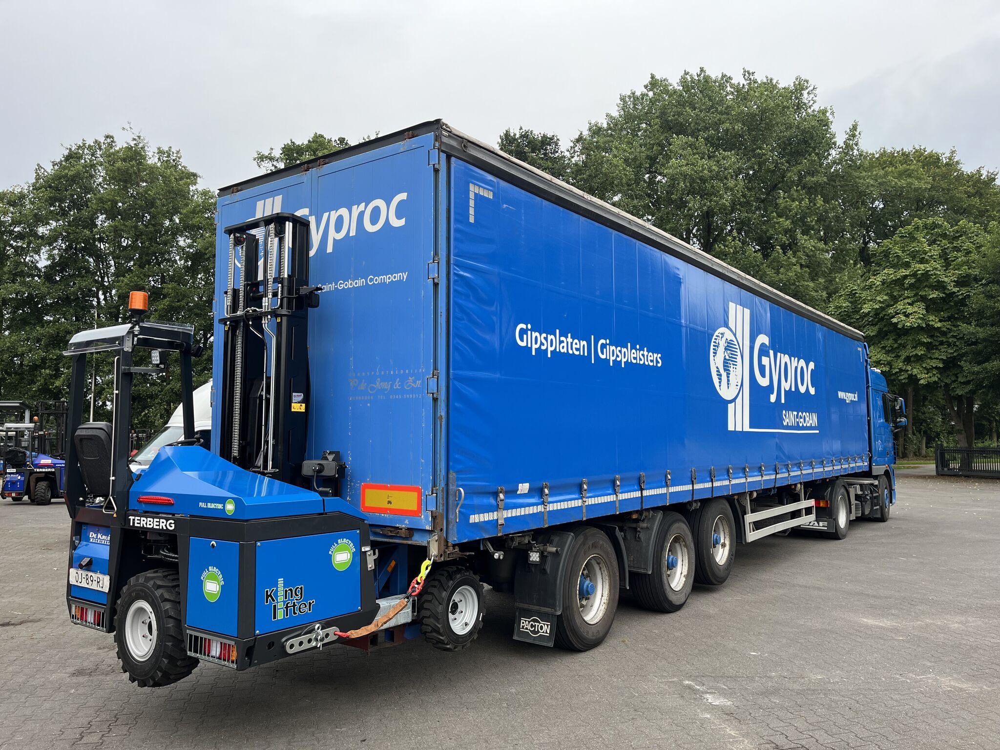 P. de Jong Transport from Leerbroek has recently introduced the fully electric Kinglifter E-TKL for their deliveries to Gyproc Nederland. This powerful machine not only enables emission-free deliveries on construction sites but also offers numerous other benefits for transport companies aiming for efficiency and sustainability. With the Kinglifter E-TKL, Terberg Kinglifter demonstrates that sustainability and performance can go hand in hand.